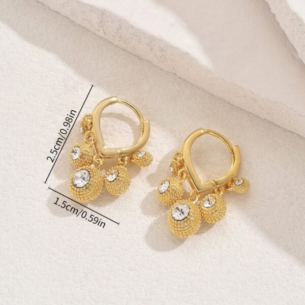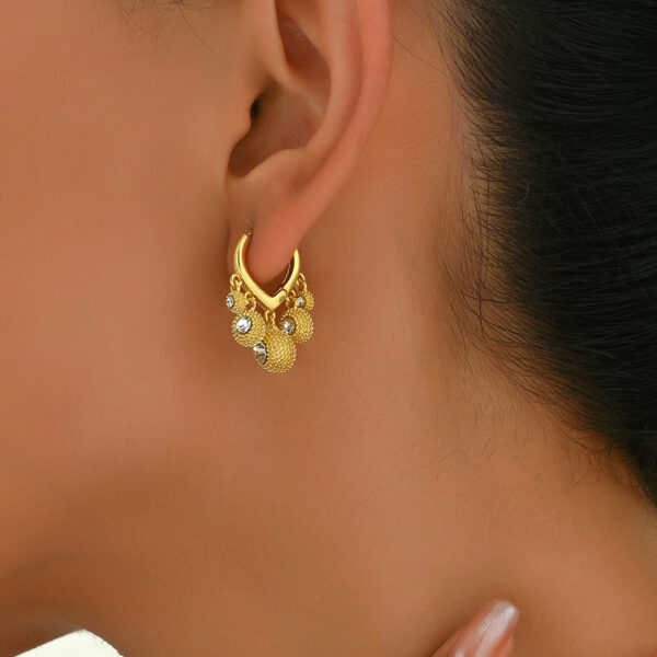 - Design Features: Hoop style, Dangling textured spherical charms, Inlaid stones