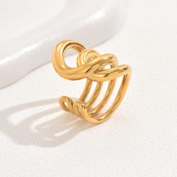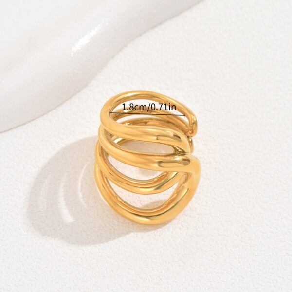 Discover effortless style with this modern copper ring, designed for versatility across different settings. Crafted from durable copper and finished with a high-quality electroplating process, this ring is built for lasting wear and a polished appearance. Featuring a captivating geometric multi-layer design, the open and adjustable structure wraps elegantly around the finger, offering a bold yet sophisticated aesthetic inspired by contemporary fashion trends. Perfect for elevating everyday outfits or adding a chic touch to business casual and evening ensembles, its adjustable nature ensures a comfortable fit for any finger. Make a confident statement with this striking piece that seamlessly blends modern design with wearability.