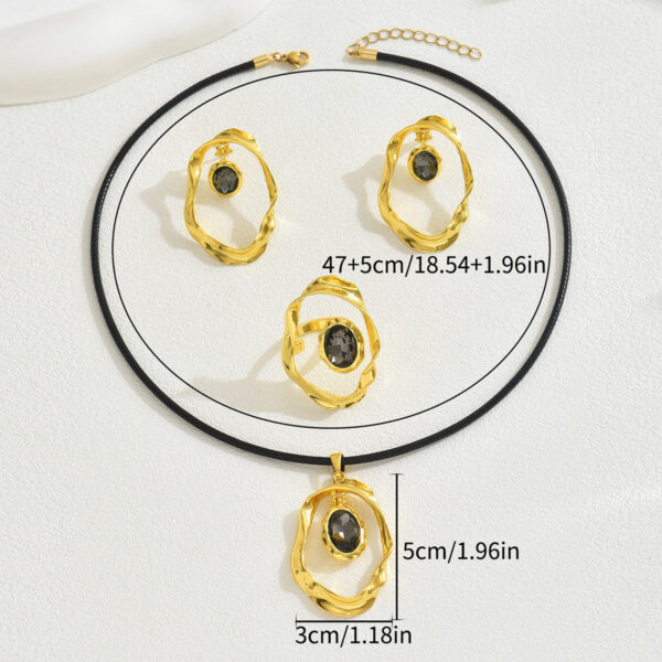 Crafted from durable alloy with a radiant gold-tone finish, this set features carefully inlaid stones. Please note that this jewelry is made from metallic materials with a gold appearance and does not contain real gold or gemstones.