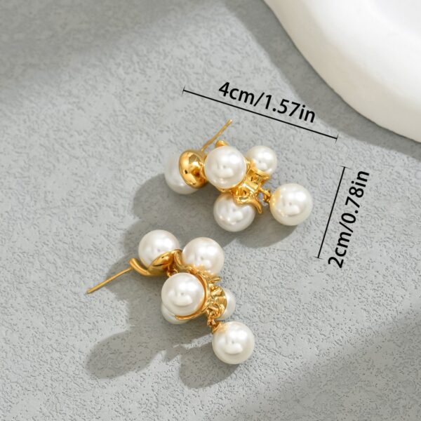 Step into timeless elegance with these exquisite French Retro pearl cluster earrings. Crafted from durable copper with a luxurious gold-tone finish, these earrings feature carefully set faux pearls. The meticulous process ensures a quality piece designed for lasting wear. The design features a charming cluster of round and oval faux pearls arranged geometrically, reminiscent of a vintage grape cluster. This classic yet unique design embodies the refined aesthetic of French retro style. Perfect for adding a touch of vintage glamour to any outfit, these earrings are versatile enough for both casual everyday wear and special occasions like parties, dinners, or events. Wearing these earrings will instantly elevate your look, adding a touch of elegant sophistication and unique personality.