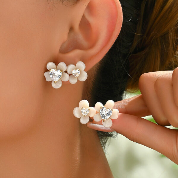 Add a touch of fresh, sweet charm to your everyday style with these delightful Korean-style stud earrings. Crafted with a durable copper base, these earrings feature meticulously shaped white resin petals and wings, inlaid with sparkling stones. Choose from charming flower studs with a heart-shaped stone center or delicate butterfly studs with a marquise-shaped stone. Their fresh and sweet aesthetic is inspired by current Korean fashion trends. These versatile stud earrings are perfect for adding a subtle sparkle to casual outfits, complementing office wear, or adding a charming touch for a date night. Express your personal style with these simple yet captivating earrings that enhance any look.