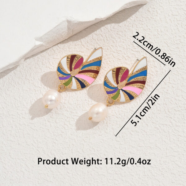 Zinc Alloy Enamel Nautilus Shell & Faux Pearl Drop Earrings